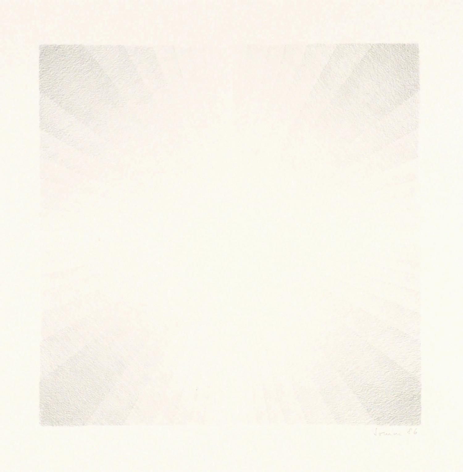 Einfache, zentralsymmetrische Formen (Kreis, Kreuz usw.) Die letzten beiden Arbeiten in Reihe 1 sind Druckgrafiken (Mezzotinto).